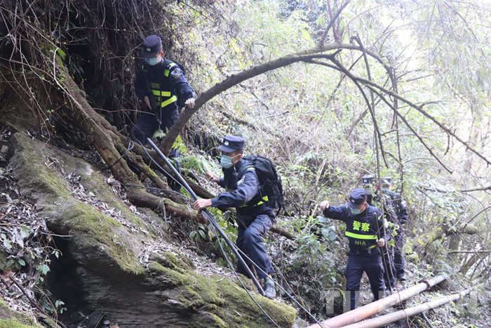 “大家注意安全,我走前面,你們跟著我的腳步走,相互之間照應(yīng)一下,發(fā)現(xiàn)情況及時匯報。”對于友誼橋執(zhí)勤點負(fù)責(zé)人的尼瑪云旦來講,帶領(lǐng)戰(zhàn)友們巡山踏查是一天中最重要的工作之一。走在隊伍前面的尼瑪云旦用棍棒將枝繁葉茂的樹枝向兩邊拍打,帶領(lǐng)著大家一步一腳印的向上爬。