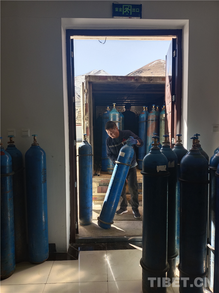 到達站區(qū)后,奎萬祥還會為職工提供“送貨上門”的服務(wù),挨個把氧氣罐送到每一間房間和辦公室。有的辦公樓和職工宿舍不止一層高,一樓還可以靠工具,二樓則需要奎萬祥“賣力氣”了??钢?5公斤裝重的氧氣罐上樓,奎萬祥有自己的秘訣——咬牙憋氣和一鼓作氣,他說:“這么高的海拔,如果中途歇下來換氣,氣息和力氣很可能會接不上”。送完氧氣罐,奎萬祥還要把空的氧氣罐再帶回車上,整個過程往往會讓他精疲力盡。