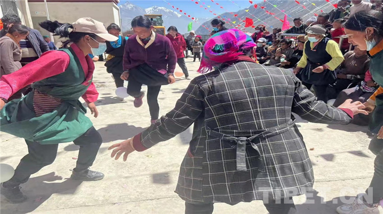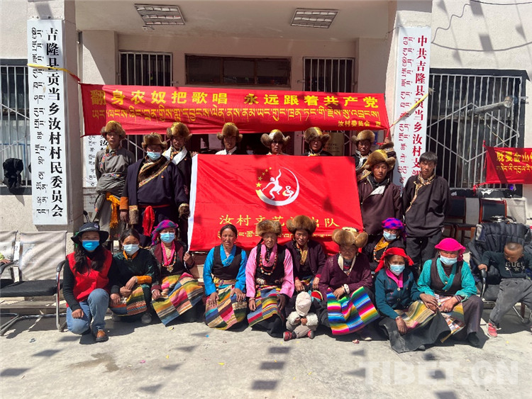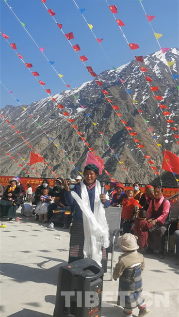 一大早,村民們匯聚在村委會,將一面鮮艷的五星紅旗冉冉升起,國歌在山谷中回蕩。村委會第一書記次仁扎西召集大家進行了新舊對比,憶苦思甜,感恩黨的關懷、感恩國家支持。宣講員白瑪卓嘎主講團結的益處,引導鄰里鄉(xiāng)親團結和睦,自覺守護中華民族大團結。在陣陣歡呼與掌聲中,汝村文藝演出隊跳起具有本村特色的鍋莊舞,84歲的曲珍老阿媽唱響《北京的金山上》。有著26年黨齡的老黨員德吉大姐用一曲《再唱山歌給黨聽》表達不忘黨恩,永遠跟黨走的決心。