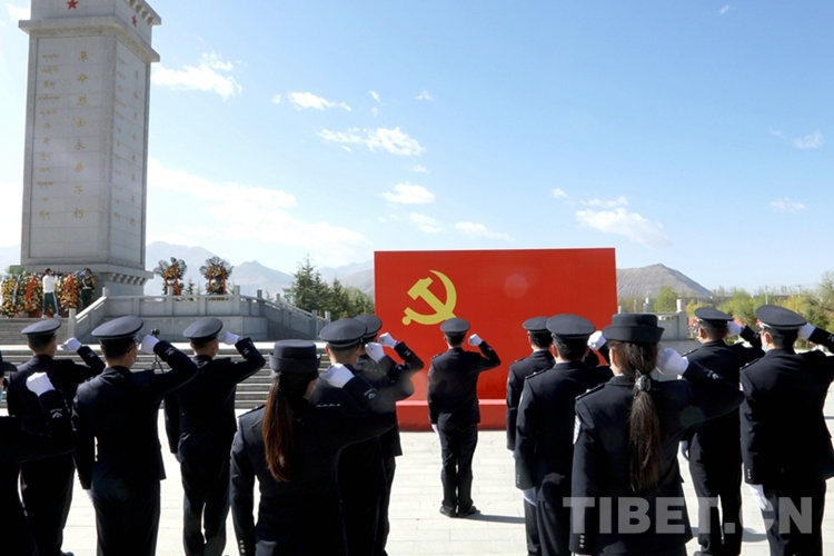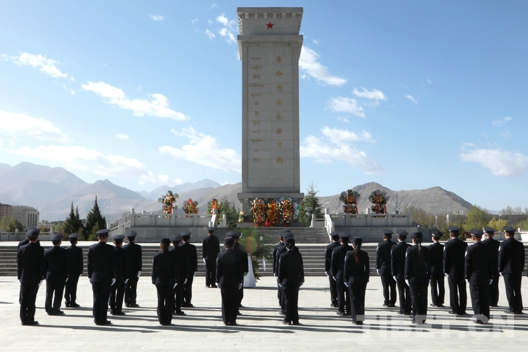 圖為西藏邊檢總站執(zhí)法調查支隊民警在拉薩烈士陵園開展祭奠活動 攝影:劉明陽