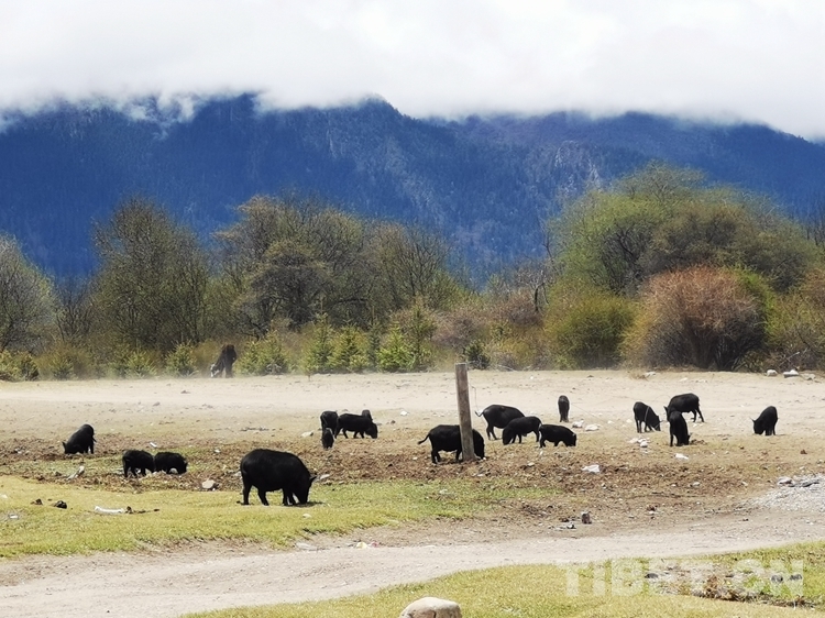 中國西藏網(wǎng)訊 5月,杰青那拉嘎布雪山上,縹緲的云霧從山間蔓延而下,環(huán)繞著巴松錯湖。沿著湖畔,高低錯落的森林繁茂,草場遼闊,濕地廣袤,四處覓食的藏香豬,甩著尾巴,散落在錯高村的田間密林。