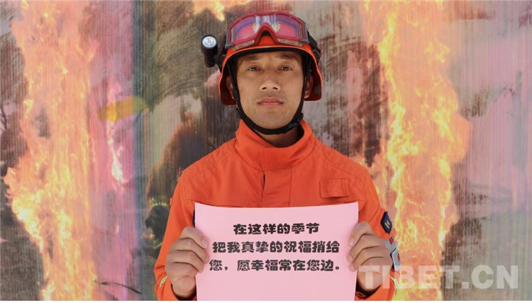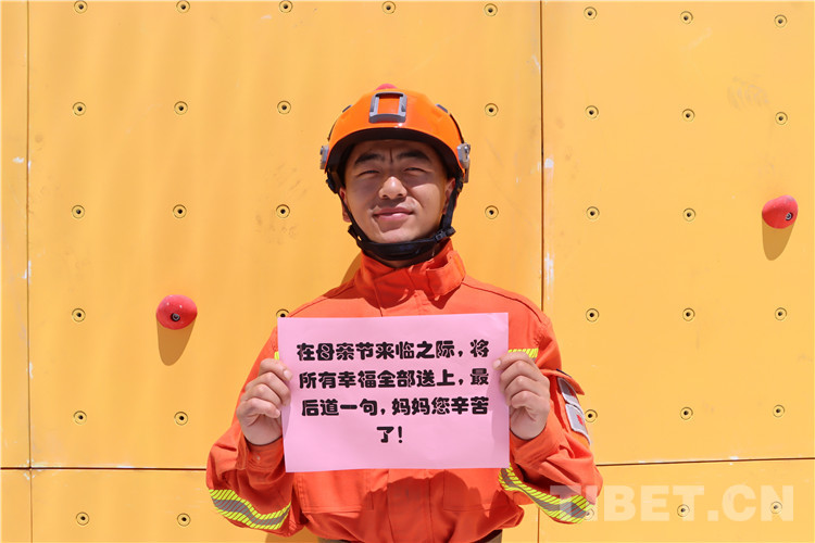 藏族消防員邊瑪桑堆對(duì)他母親說(shuō):“母親節(jié)到了,我祝媽媽節(jié)日快樂(lè)!媽媽,扎西德勒!”