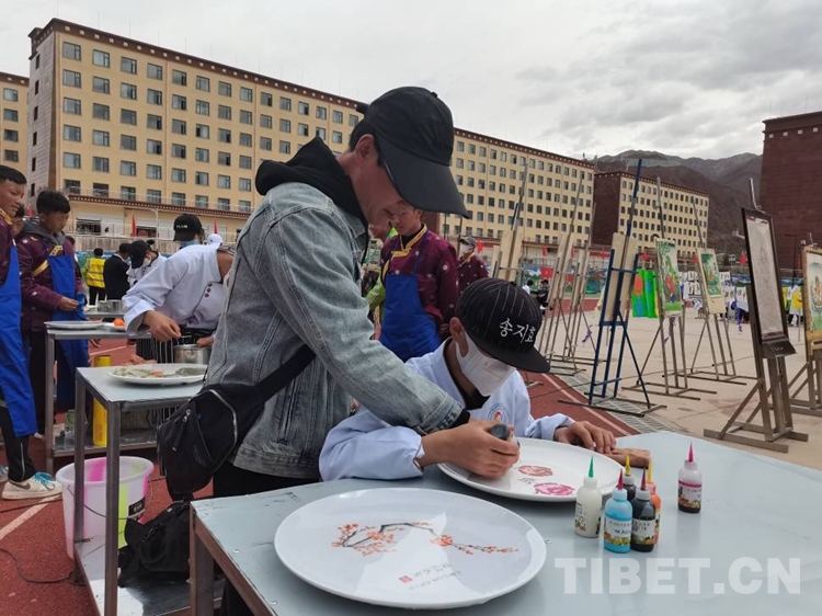 圖為烹飪專業(yè)教師李建國(guó)指導(dǎo)來(lái)自丁青縣的洛松德青制作果醬畫