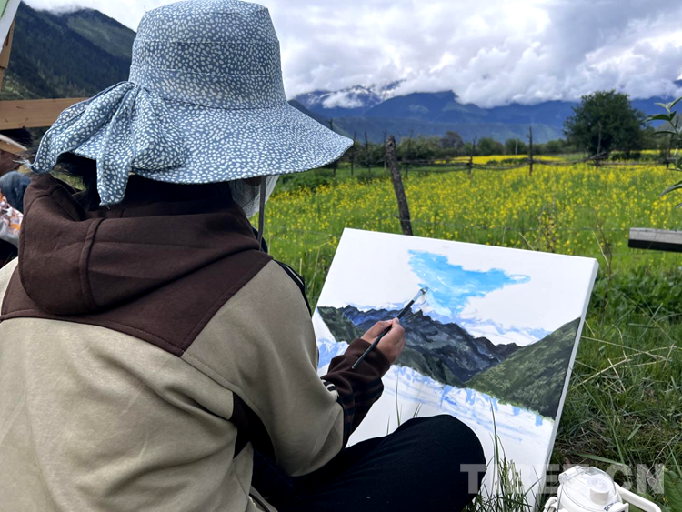 “參加這次活動讓我眼界大開,平時在學校大部分都是靠手機里的照片臨摹繪畫,很少走出教室、面對大自然,這次機會很難得,只想把握時間盡情創(chuàng)作。明年畢業(yè)后,我會回到老家昌都市左貢縣,當一名基層美術老師,教小朋友們畫畫。”西藏大學藝術學院大三學生曲西說。