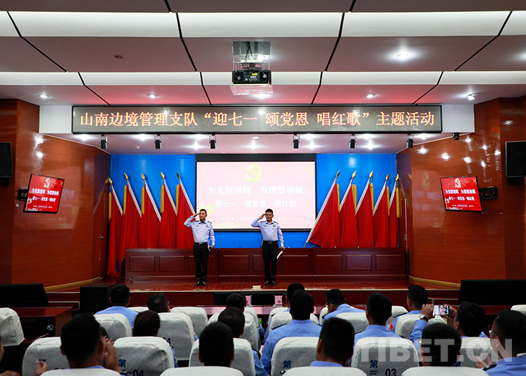 圖為山南邊境管理支隊機關(guān)組織開展“為黨旗增輝 為理想揚帆——迎七一 頌黨恩 唱紅歌”主題歌詠比賽 鄭琦山攝