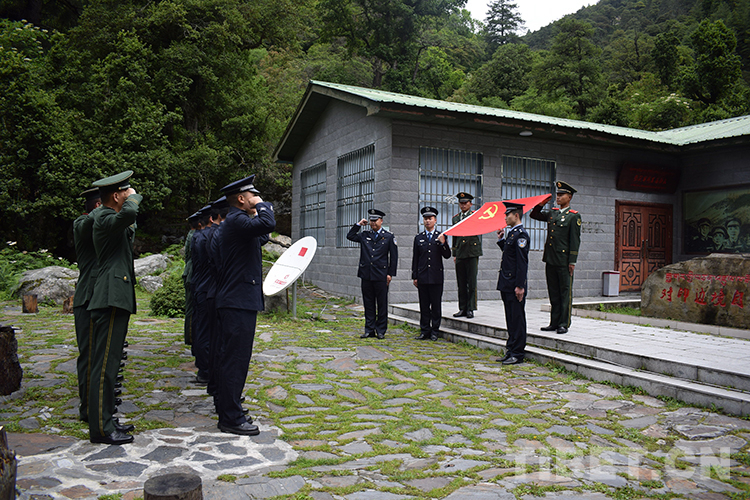 圖為錯那邊境檢查站民警與錯那縣武警中隊官兵共同在對印自衛(wèi)反擊戰(zhàn)前沿指揮所舊址重溫入黨誓詞 李啟書 攝