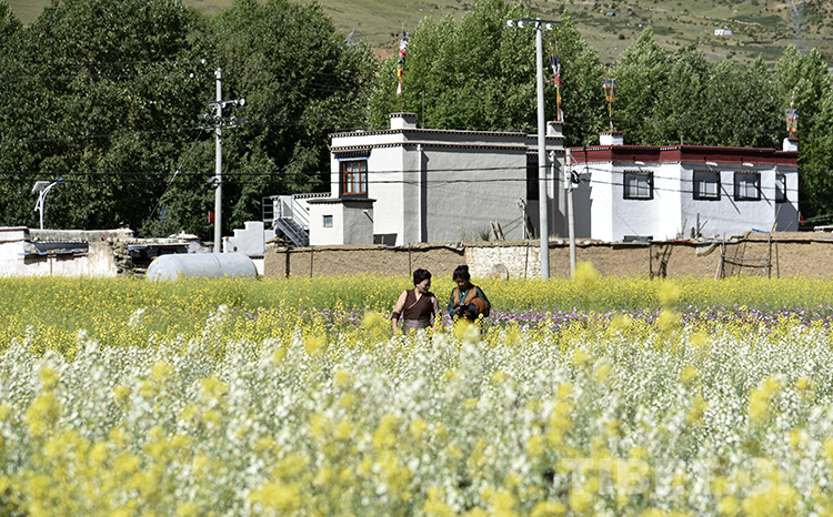 時下,驅車行駛在318國道墨竹工卡段,油菜花將大地“染成”金黃,連同綠色山巒和青稞,演繹著美麗的鄉(xiāng)村畫卷。