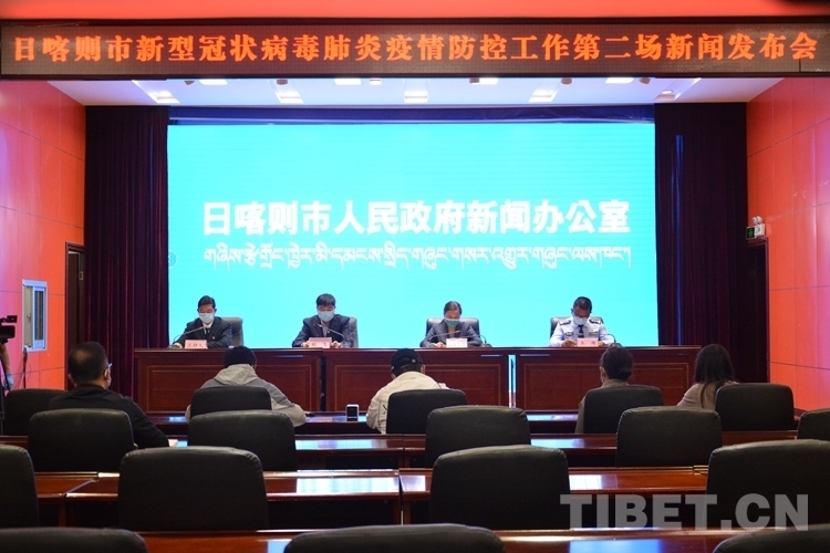 圖為日喀則市召開第二場新冠肺炎疫情防控新聞發(fā)布會(huì)現(xiàn)場