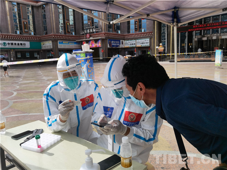 圖為日喀則大隊(duì)救援人員進(jìn)入定點(diǎn)隔離酒店收集信息