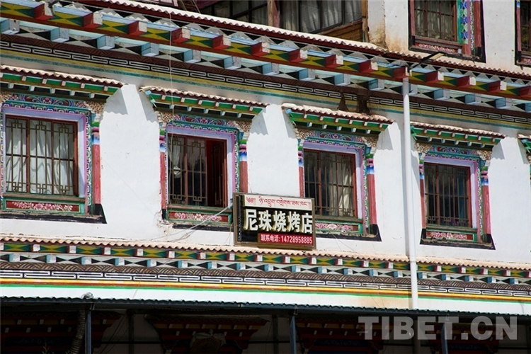 依山而建的藏式三層小樓里,丁增拉姆將房屋裝修得華麗亮堂,墻壁上繪有吉祥圖案,天花板與地板相接的立柱滿是精致的雕刻和彩繪,掛著吉祥的哈達(dá)。門外小院臺(tái)階旁的葡萄藤密密地纏繞在架子上,成串果實(shí)掛在枝頭。單獨(dú)分離出來的廚房和餐廳,也是孩子們的游樂場,沐浴著陽光下棋、讀書,一片歡聲笑語??拷鼧求w的小小花壇自然隔開了生活區(qū)和商業(yè)區(qū),一樓就是丁增拉姆家的尼珠燒烤店。沿著馬路的空地,搭建了長長的涼棚,夜晚在這里和三五好友吃著燒烤,吹著清涼的風(fēng),望著閃耀的星星,談?wù)勅松屠硐?,再舒服不過了。