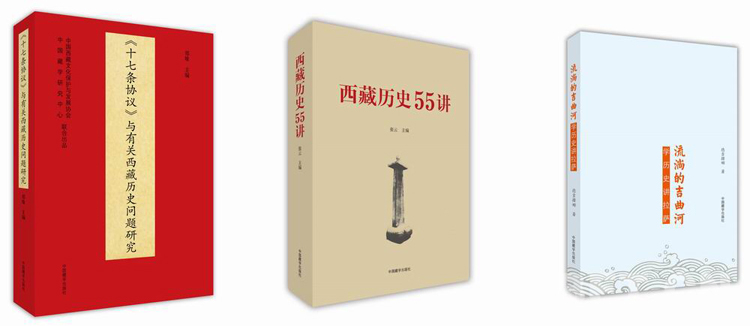 圖為《〈十七條協(xié)議〉與有關(guān)西藏歷史問(wèn)題研究》《西藏歷史55講》《流淌的吉曲河——學(xué)歷史講拉薩》書(shū)影
