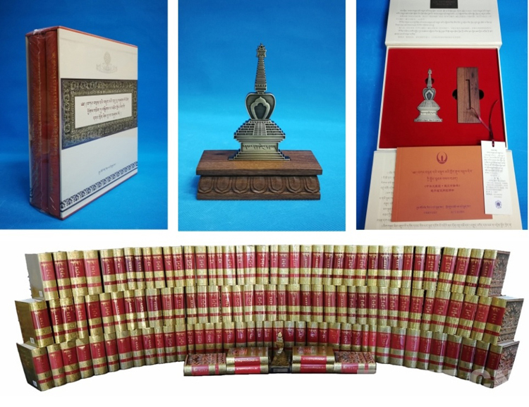 上圖為電子版大藏經(jīng)裝幀展示,下圖為《中華大藏經(jīng)·藏文對(duì)勘本》實(shí)體書(shū)書(shū)影