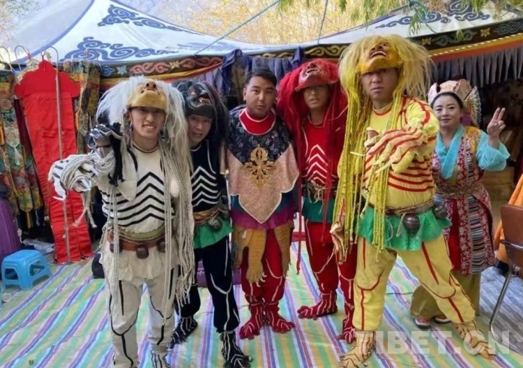起初抱著學(xué)習(xí)的態(tài)度來到雪巴拉姆藏戲團(tuán)的旦增益西,被各位前輩對(duì)藏戲的執(zhí)著和堅(jiān)守打動(dòng)了?!把┌屠凡貞驁F(tuán)共有56名成員,團(tuán)隊(duì)的年齡層次從86到16歲。團(tuán)隊(duì)里的每個(gè)人都是一專多能,因?yàn)槭杖氩欢啵蠹乙捕忌砑娓睒I(yè),但是沒有人放棄學(xué)習(xí)藏戲。”