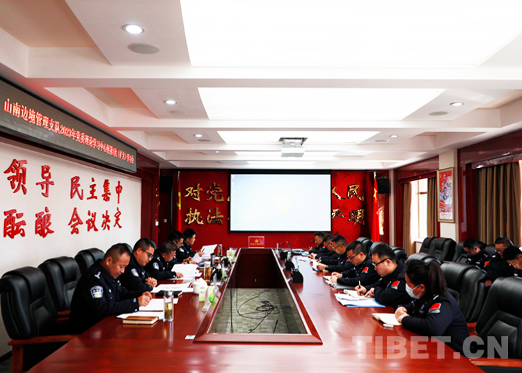 圖為山南邊境管理支隊(duì)召開黨委理論學(xué)習(xí)中心組(擴(kuò)大)學(xué)習(xí)會(huì),深入學(xué)習(xí)兩會(huì)精神 鄭琦山 攝