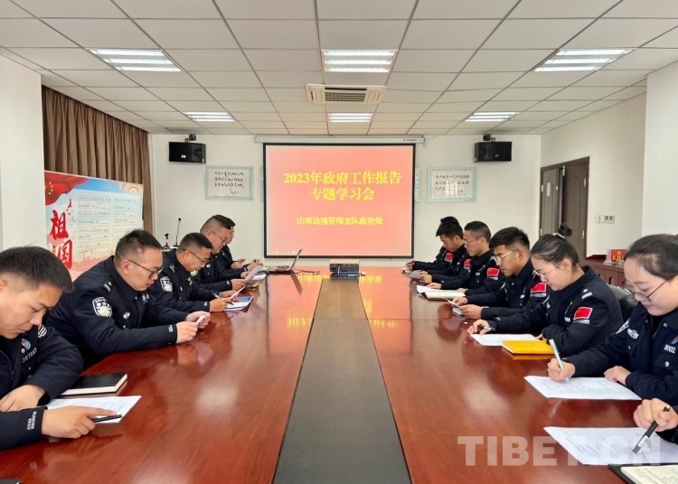 圖為山南邊境管理支隊(duì)政治處組織民警學(xué)習(xí)政府工作報(bào)告 索朗次旺 攝