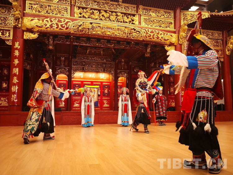 西藏藏劇團(tuán)副團(tuán)長米瑪普赤就藏戲的起源、藏戲的特點、藏戲的流派等進(jìn)行了詳細(xì)介紹。伴隨著雄渾響亮的鼓鈸聲,西藏自治區(qū)拉薩市城關(guān)區(qū)娘熱民間藝術(shù)團(tuán)的藝術(shù)家們表演了藏戲開場《溫巴頓》、藏戲唱腔《朗薩雯波》之貢桑德慶唱腔、拉薩囊瑪《吉白尼瑪》、嘎爾《郎卓》等經(jīng)典片段。精美的服飾、鏗鏘的唱腔、緊湊的故事情節(jié)……贏得了與會嘉賓的連連贊嘆與陣陣掌聲。