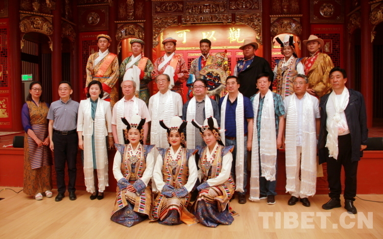 圖為西藏自治區(qū)拉薩市城關(guān)區(qū)娘熱民間藝術(shù)團(tuán)的藝術(shù)家們與“戲舞雪域——多元文化視野中的藏戲藝術(shù)推廣研討會”專家合影 攝影:劉莉