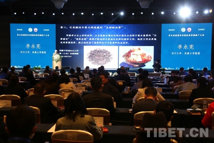 圖為大會現(xiàn)場,四川大學(xué)、西藏大學(xué)教授李永憲介紹“高原絲綢之路” 攝影:王佳豪