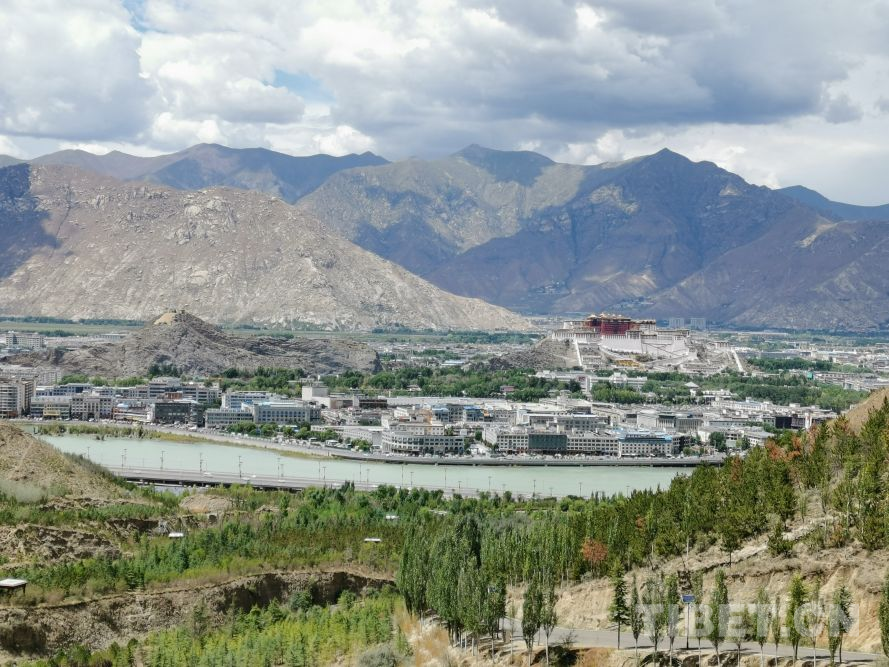 圖為在拉薩南山公園遠(yuǎn)眺布達(dá)拉宮