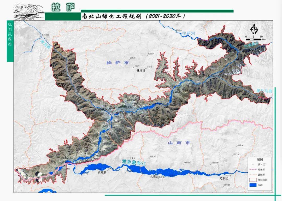 該工程以拉薩河為主線,以山體兩側(cè)第一重山脊可視范圍為重點(diǎn),涉及拉薩市城關(guān)區(qū)、柳梧新區(qū)、堆龍德慶區(qū)、達(dá)孜區(qū)、曲水縣、墨竹工卡縣、林周縣和山南市浪卡子縣、貢嘎縣9縣(區(qū))35個(gè)鄉(xiāng)鎮(zhèn)。自2021年至2030年,用10年時(shí)間完成營(yíng)造林206.7萬(wàn)畝,新增營(yíng)造林面積約為現(xiàn)有南山綠化面積的600倍。