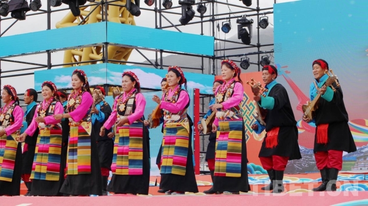 下午,拉孜縣藝術(shù)團演員們通過演出藏戲、諧欽、朗瑪堆諧和唱歌等形式,再次為現(xiàn)場的觀眾獻上一臺文藝盛宴。拉孜縣藝術(shù)團演員尼瑪占堆說:“活動舉辦前期,我們在選拔演員和排練上遇到了很多困難,演員們作為非專業(yè)人士,在排練過程中都非常努力,雖然過程很辛苦,但是看到大家在舞臺上表現(xiàn)很好,心里感到很欣慰。”