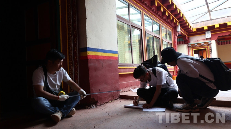 在十幾天的綜合科考活動中,科考團(tuán)隊的青年隊員們持續(xù)克服高原缺氧、路途顛簸和水土不服等各方面的困難,順利完成了綜合科考隊下達(dá)的每日科考任務(wù)。身處青藏高原的腹地,青年隊友們每天早上八點半從營地出發(fā),完成各類田野調(diào)查和測繪工作,歸來已經(jīng)是晚上的八、九點鐘。在吃過晚飯后,他們會著手整理每天的田野工作成果,直至深夜。在這樣的工作強(qiáng)度之下,青年隊員們最終完成了五個鄉(xiāng)鎮(zhèn)、八個行政村和二十一個自然村的共計六十棟古建筑的測繪工作。