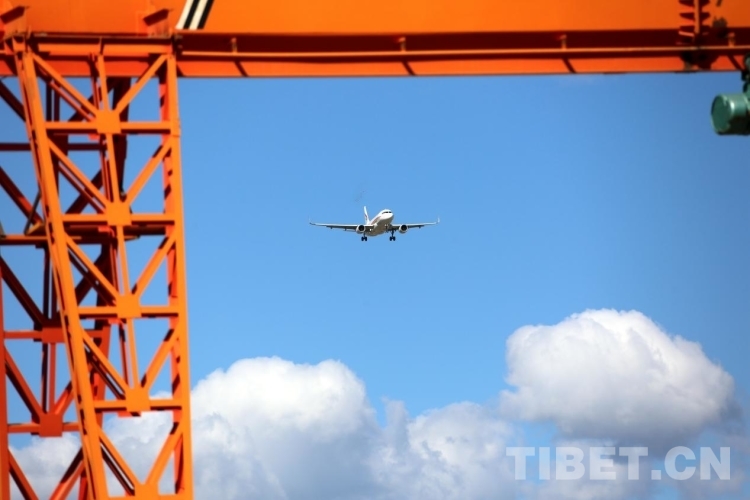 圖為一架西藏航空旗下的飛機(jī)從開(kāi)工儀式現(xiàn)場(chǎng)上空飛過(guò) 攝影:王佳豪