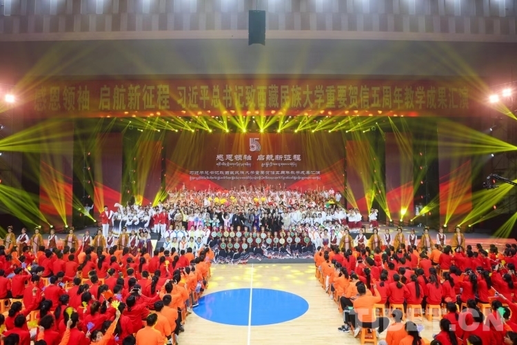 圖為習(xí)近平總書記致西藏民族大學(xué)重要賀信五周年教學(xué)成果匯演現(xiàn)場