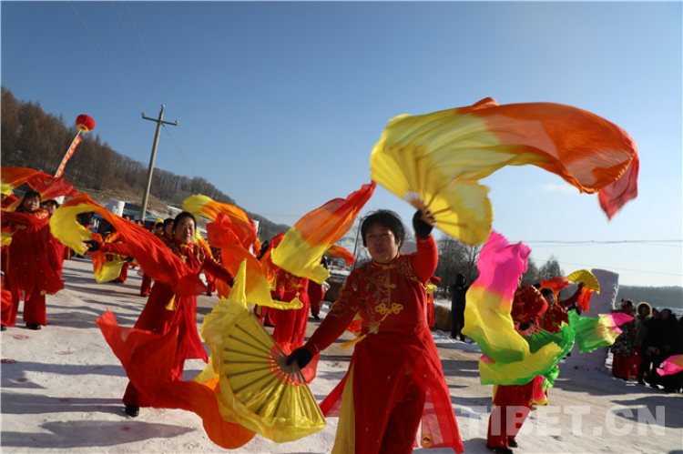 滿是積雪的雪原鄉(xiāng)村煥然一新,整整齊齊的迎賓雪人站立路旁,彩旗迎風招展,紅彤彤的燈籠飄在空中,遠遠就看到東北大秧歌熱情地在村子的街道上舞動。
