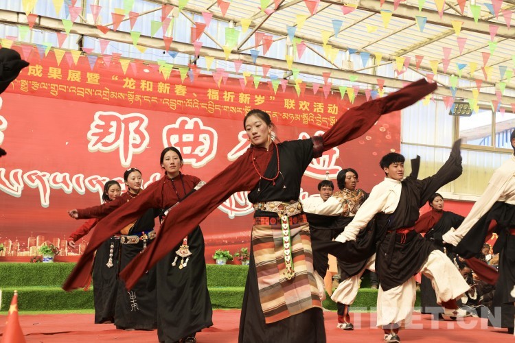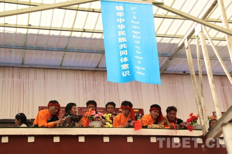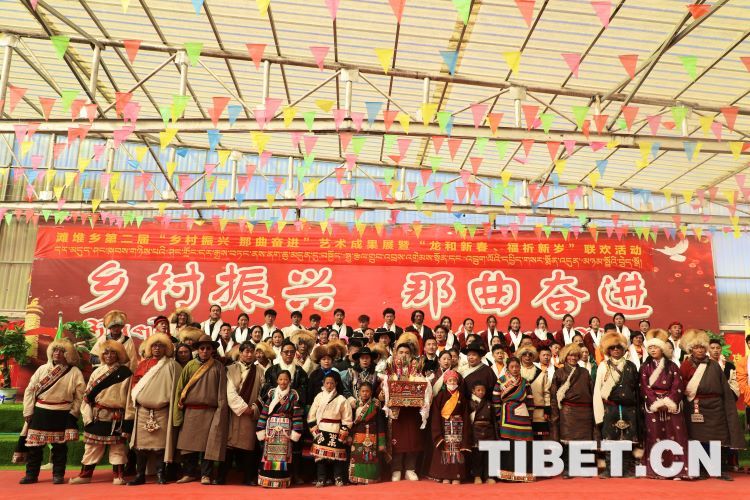 中國西藏網(wǎng)訊 2月10日,中國西藏信息中心“新春走基層”青藏線采訪組一行,來到西藏自治區(qū)那曲市安多縣灘堆鄉(xiāng),適逢當?shù)卦谂e辦灘堆鄉(xiāng)第二屆“鄉(xiāng)村振興 那曲奮進”藝術(shù)成果展暨“龍和新春、福祈新歲”聯(lián)歡活動。采訪組一行來到鄉(xiāng)政府對面的灘堆鄉(xiāng)文化站,記者在現(xiàn)場看到許多穿著具有當?shù)孛褡逄厣椀娜嗽诖司奂?。在好奇心的?qū)使下,經(jīng)詢問當?shù)馗刹坎胖?,為喜?024春節(jié)和藏歷新年,感激黨和國家的關(guān)心關(guān)懷,歌頌如今來之不易的幸福生活,鄉(xiāng)村文藝隊特此精心準備了文藝節(jié)目,以嶄新的面貌和昂揚的精神展現(xiàn)新時代牧民群眾的精神風(fēng)貌和幸福生活。