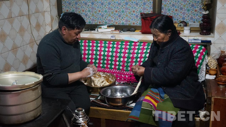 圖為次仁德瓊的家人正在做“古突” 攝影:張曉琪