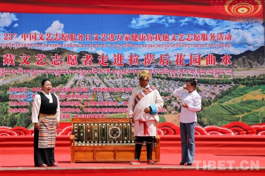 中國西藏網(wǎng)訊 今年5月23日是第11個中國文藝志愿者服務(wù)日。當(dāng)日,西藏文藝志愿者走進拉薩后花園曲水縣開展文藝志愿服務(wù)活動。