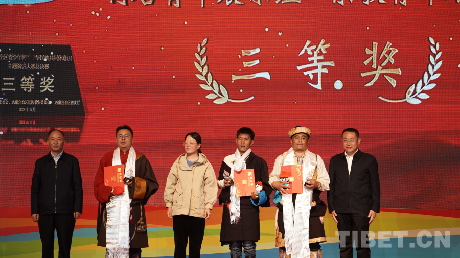 經過兩天的激烈角逐,來自全區(qū)7市(地)、7所高校、74個縣區(qū)、850多個村居、320所中小學和85家區(qū)中直單位以及28座寺廟的104名優(yōu)秀選手完成了總決賽各項賽事,最終拉薩市實驗小學東城分校的徐瑞昆吉獲得小學組一等獎、山南市乃東區(qū)昌珠鎮(zhèn)洞嘎社區(qū)洛桑次仁獲得村居青年組一等獎、拉薩北京實驗中學的德慶邊宗獲得中學組一等獎、日喀則市江孜縣林布寺扎西次仁獲得宗教青年組一等獎、山南市東輝中學屈彥碩獲得青年組一等獎,此外還有11位選手獲得二等獎,18位選手獲得三等獎。
