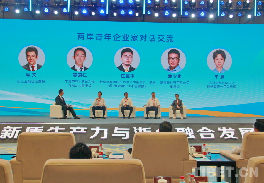 開(kāi)幕式上,阿里巴巴集團(tuán)董事會(huì)主席蔡崇信,新華三集團(tuán)總裁兼CEO于英濤,富士康工業(yè)互聯(lián)網(wǎng)股份有限公司董事長(zhǎng)、總經(jīng)理鄭弘孟,臺(tái)灣工業(yè)總會(huì)副理事長(zhǎng)、敏實(shí)控股董事會(huì)主席秦榮華等兩岸企業(yè)家代表圍繞“新質(zhì)生產(chǎn)力與浙臺(tái)融合發(fā)展”進(jìn)行了主旨演講。納獅新材料董事長(zhǎng)袁安素、寧波齊芯半導(dǎo)體科技有限公司首席執(zhí)行官黃昭仁、新鳳鳴集團(tuán)董事長(zhǎng)莊耀中、杭州新劍機(jī)電傳動(dòng)股份有限公司總經(jīng)理單晨等兩岸青年企業(yè)家圍繞“以科技創(chuàng)新、產(chǎn)業(yè)與人才合作助推加快形成新質(zhì)生產(chǎn)力”開(kāi)展了對(duì)話交流。