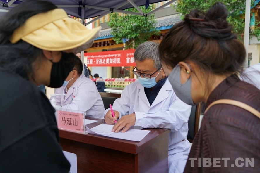 圖為7月7日,北京豐臺醫(yī)院副院長馬延山在白玉縣新時代文明廣場義診點 攝影:周晴晴