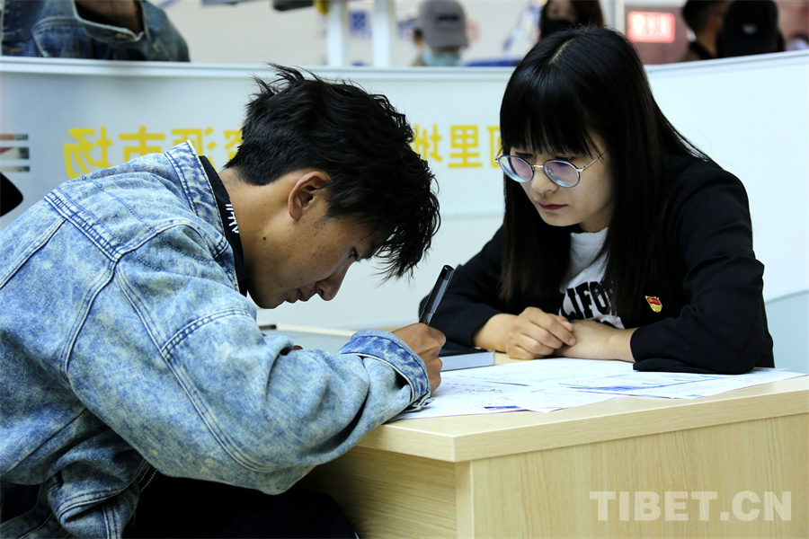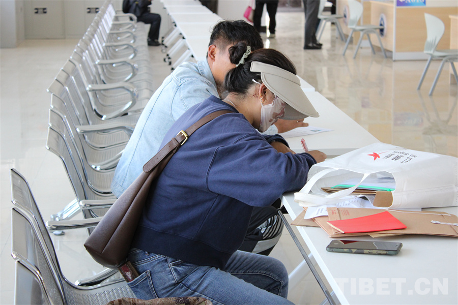 招聘會現(xiàn)場設(shè)有咨詢區(qū)、面試區(qū)及休息區(qū),提供一站式求職服務(wù)。會場內(nèi)的一塊大屏幕吸引了很多求職者的目光,工作人員介紹道:“屏幕滾動展示陜西省、河北省的援藏崗位。我們是鼓勵區(qū)外就業(yè)的,有補(bǔ)貼政策。為爭取這些崗位,我們積極主動與河北省、陜西省對接,通過回訪兩省三企等方式降低崗位招入要求,進(jìn)一步增加崗位匹配度?!?/p>