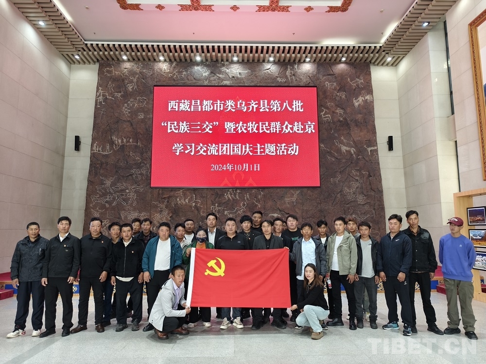 中國(guó)西藏網(wǎng)訊 金秋的北京城,洋溢著節(jié)日的喜慶與祥和。10月1日上午,西藏自治區(qū)昌都市類烏齊縣的第八批“民族三交”暨農(nóng)牧民群眾赴京學(xué)習(xí)交流團(tuán)來(lái)到中國(guó)藏學(xué)研究中心西藏文化博物館進(jìn)行參觀考察。