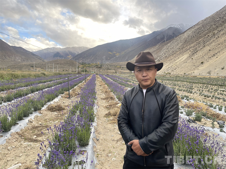 圖為八宿縣吉達鄉(xiāng)黨委書記仁青貢布站在大片的薰衣草田間 攝影:王妍丹