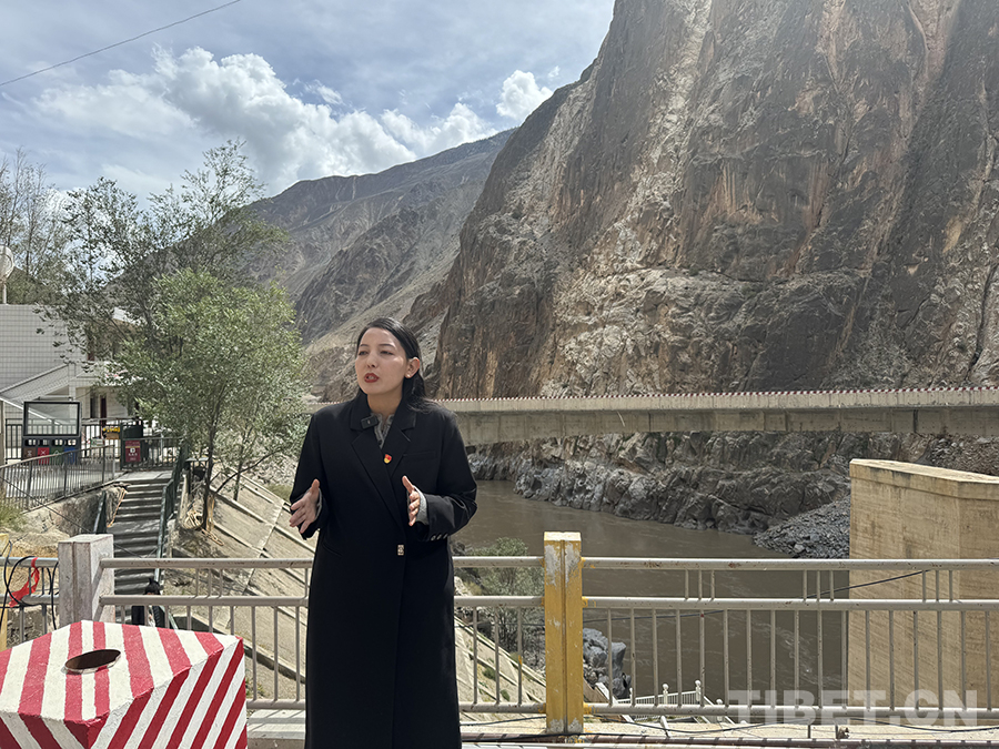 圖為八宿縣文旅推介員達(dá)瓦卓瑪介紹怒江大橋相關(guān)情況 攝影:王妍丹