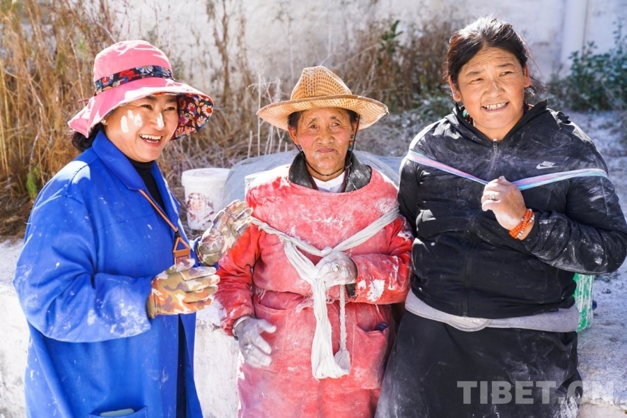在布達拉宮粉刷現(xiàn)場,有每年都堅持參與的拉薩市民,有從遙遠昌都、那曲等地專程趕來的群眾,亦有冬游西藏恰巧遇到參與其中的外地游客。他們不分年齡、不分性別,一起在拉薩溫暖的秋日暖陽中用熱情洋溢的笑臉參與到這一“甜蜜”的粉刷活動中來。