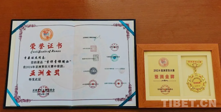 圖為獲獎(jiǎng)證書及獎(jiǎng)牌 圖源:西藏日報(bào)