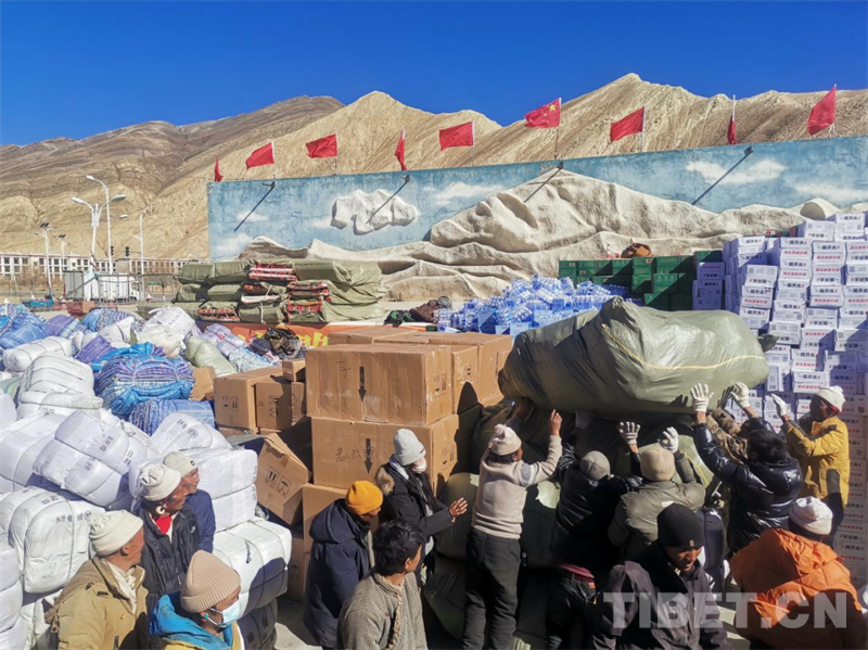 相關地方商務主管部門已向受災地區(qū)調(diào)運方便面、瓶裝水、面包、糌粑、酥油等食品15.3萬箱以及電熱毯、取暖爐、棉被、棉衣、毛毯等物資7.3萬件。