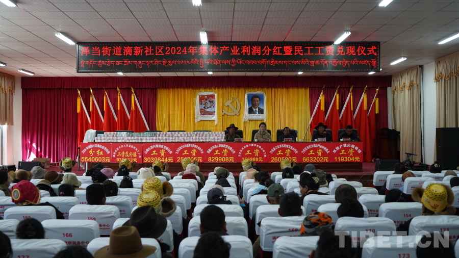 圖為西藏自治區(qū)山南市澤當街道滴新社區(qū)2024年集體產(chǎn)業(yè)利潤分紅暨民工工資兌現(xiàn)儀式現(xiàn)場