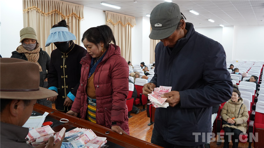 中國西藏網(wǎng)訊 2月11日,在西藏自治區(qū)山南市澤當街道辦事處滴新社區(qū)居民委員會會議室里,一片人聲鼎沸、熱火朝天的景象,2024年滴新集體產(chǎn)業(yè)利潤分紅暨民工工資兌現(xiàn)儀式正在這里舉行。