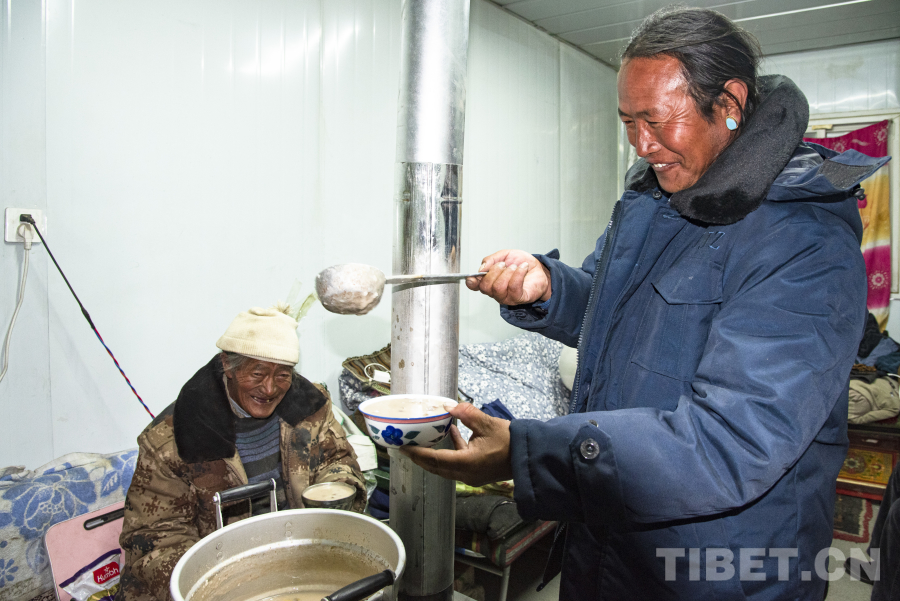 在日喀則市定日縣長所鄉(xiāng)茶江村受災(zāi)群眾安置點,我們走進(jìn)了扎西大哥的家里,品嘗一碗熱騰騰的‘古突’。