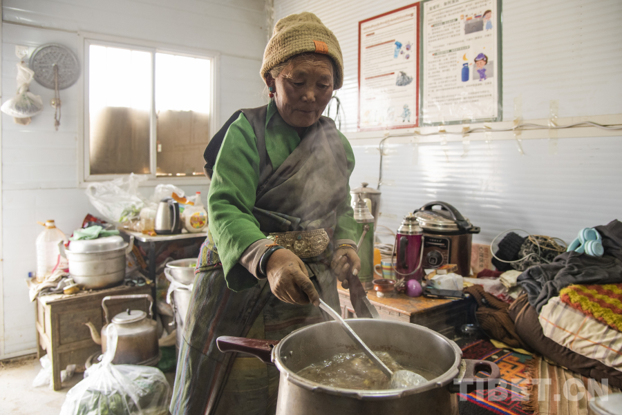 “莫啦(藏語意為‘奶奶')家里的年輕人現(xiàn)下都在村里忙著重建,兩位老人在家里做好‘古突’等著孩子們回家!”