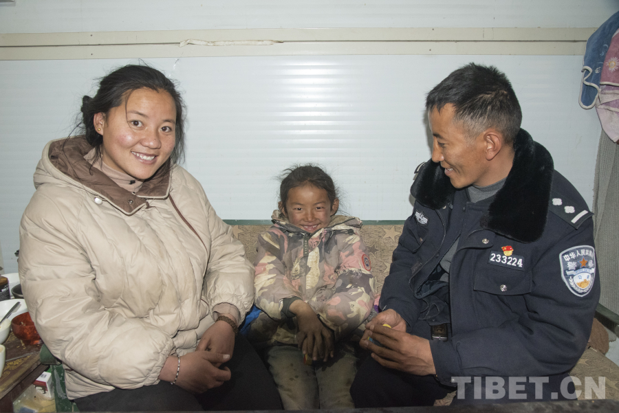 “我的小兒子扎西羅布性格比較內(nèi)向,現(xiàn)在正在讀小學(xué)四年級,我擔(dān)心他到縣里讀書會不適應(yīng)?!卑⒓迅裆A訴著自己的擔(dān)心,村干部和民警耐心地向她介紹情況。