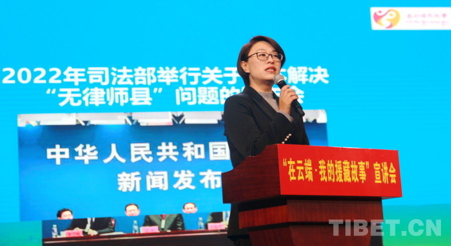 圖為四川盛豪律師事務(wù)所三州分所運(yùn)營總監(jiān)馬曉玲講述律師援藏故事 攝影:劉莉