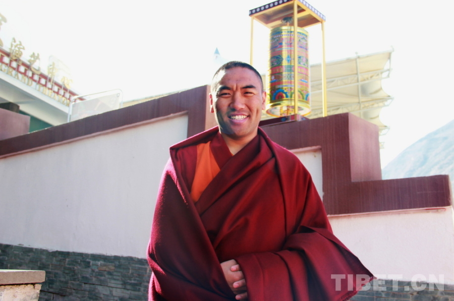 圖為四川省阿壩州九寨溝縣達(dá)吉寺的高級經(jīng)師、中國藏語系高級佛學(xué)院首批“拓然巴”高級學(xué)銜獲得者之一王杰澤然接受采訪 攝影:張家文