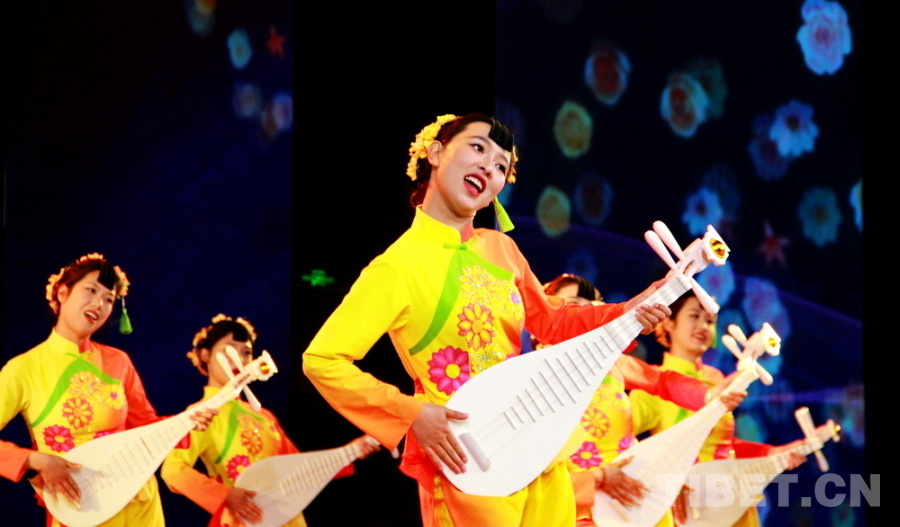 圖為“在云端·我的援藏故事”宣傳活動(dòng)在四川省阿壩州九寨溝縣開展宣講活動(dòng)現(xiàn)場,演員們以九寨溝縣地方傳統(tǒng)音樂、國家級非物質(zhì)文化遺產(chǎn)南坪曲子中的“采花”調(diào)創(chuàng)作的《盼紅軍》表達(dá)對援藏干部人才的敬意 攝影:劉莉
